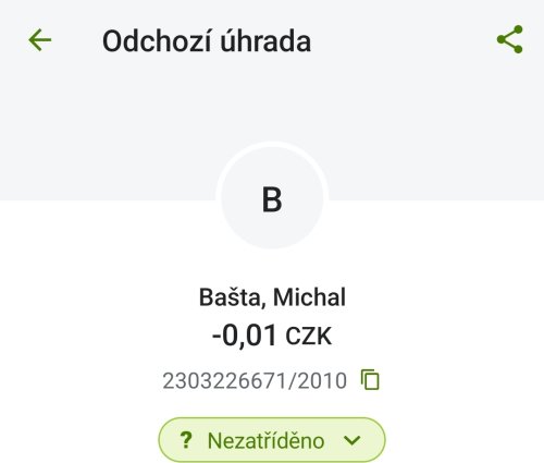 Poslat zprávupřidal/a skutečné jméno majitele účtu: Michal Bašta k bankovnímu účtu: 119033168/2250