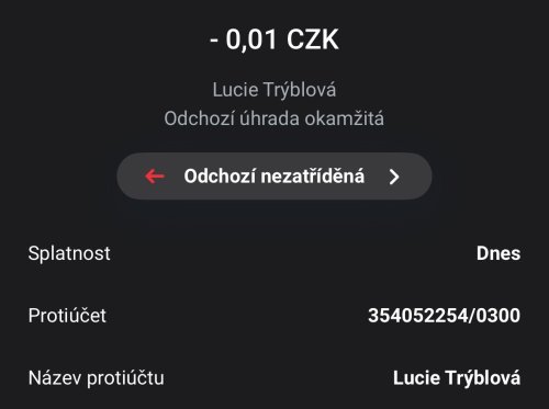 | 16. 01. 2026 | Online přes portál | 354052254/0300 | 449,- | PID-EM-2026/1836460 () |