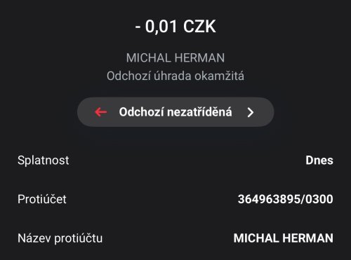Poslat zprávupřidal/a skutečné jméno majitele účtu: Michal Herman k bankovnímu účtu: 364963895/0300
