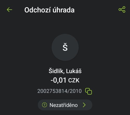 Poslat zprávupřidal/a skutečné jméno majitele účtu: Lukáš Šidlík k bankovnímu účtu: 2002753814/2010