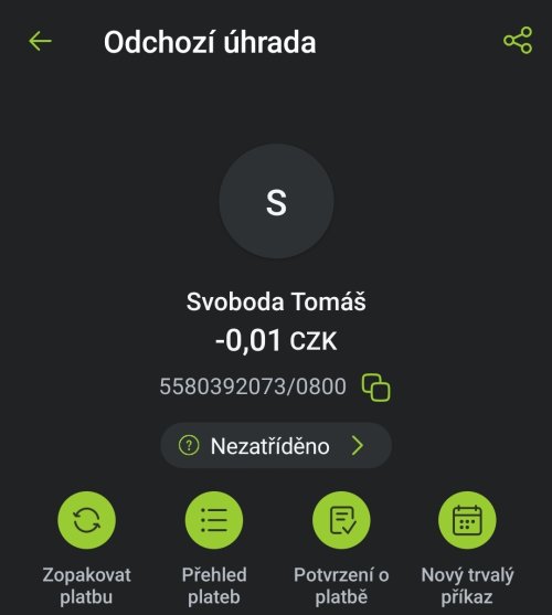 Poslat zprávupřidal/a skutečné jméno majitele účtu: Tomáš Svoboda k bankovnímu účtu: 5580392073/0800