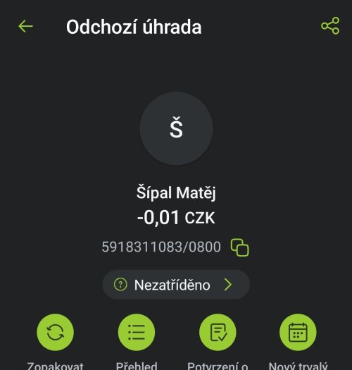 Poslat zprávupřidal/a skutečné jméno majitele účtu: Matěi Šípal k bankovnímu účtu: 5918311083/0800