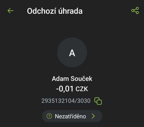 Poslat zprávupřidal/a skutečné jméno majitele účtu: Adam Souček k bankovnímu účtu: 2935132104/3030