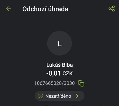 Poslat zprávupřidal/a skutečné jméno majitele účtu: Lukáš Bíba k bankovnímu účtu: 1067665028/3030