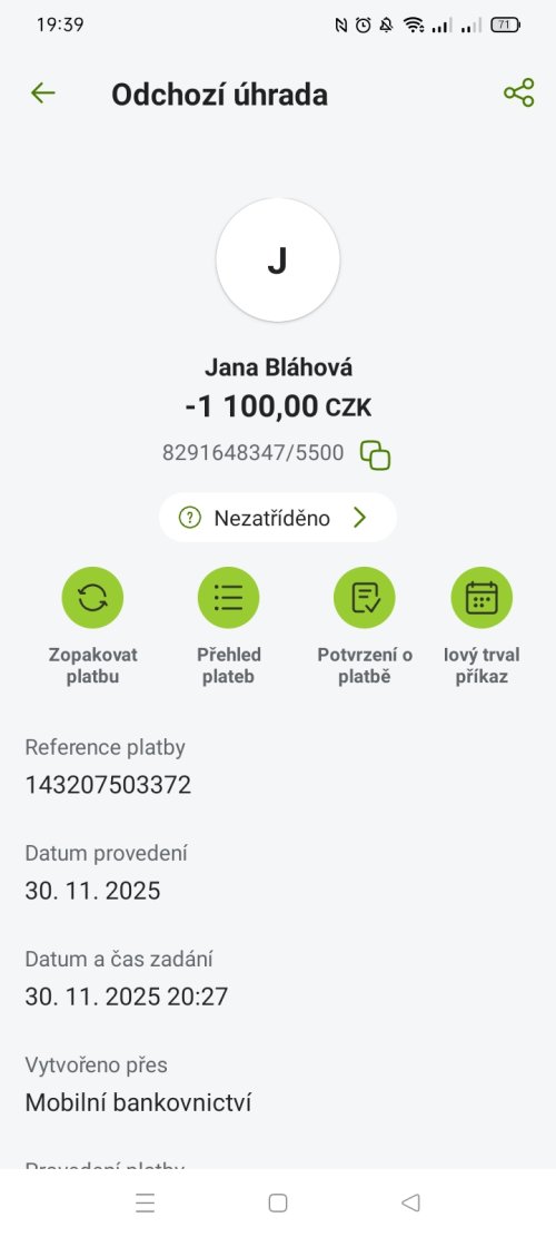 Poslat zprávupřidal/a skutečné jméno majitele účtu: Jana Bláhová k bankovnímu účtu: 8291648347/5500