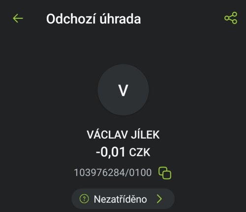 Poslat zprávupřidal/a skutečné jméno majitele účtu: Václav Jílek k bankovnímu účtu: 103976284/0100