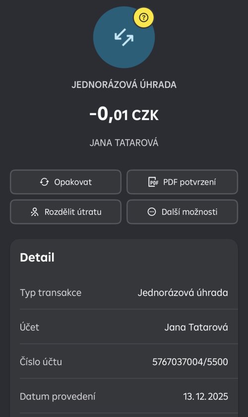 Poslat zprávupřidal/a skutečné jméno majitele účtu: Jana Tatarová k bankovnímu účtu: 5767037004/5500