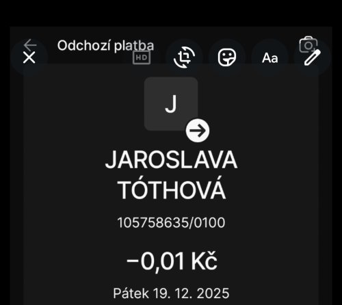 Poslat zprávupřidal/a skutečné jméno majitele účtu: Jaroslava Tóthová k bankovnímu účtu: 105758635/0100