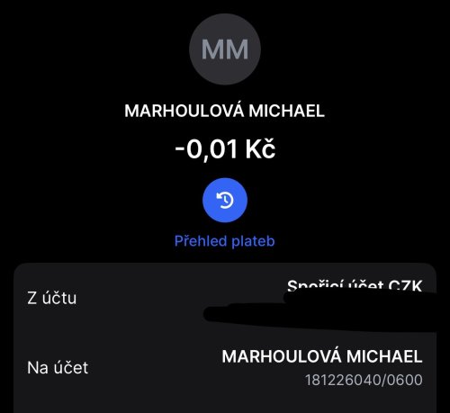 Poslat zprávupřidal/a skutečné jméno majitele účtu: Michaela Marhoulová k bankovnímu účtu: 181226040/0600