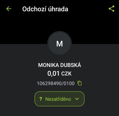 | 08. 10. 2025 | Online přes portál | 106298490/0100 | 3600,- | - |