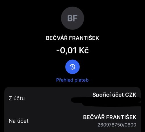 Poslat zprávupřidal/a skutečné jméno majitele účtu: František Bečvář k bankovnímu účtu: 260978750/0600