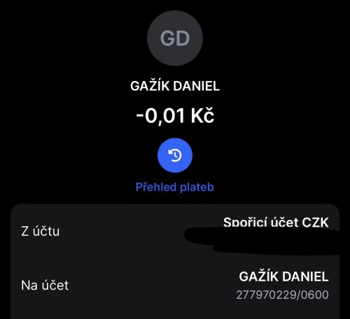 Poslat zprávupřidal/a skutečné jméno majitele účtu: Daniel Gažík k bankovnímu účtu: 277970229/0600