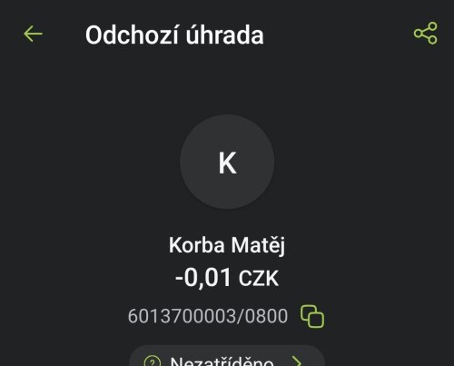 Poslat zprávupřidal/a skutečné jméno majitele účtu: Matěj Korba k bankovnímu účtu: 6013700003/0800
