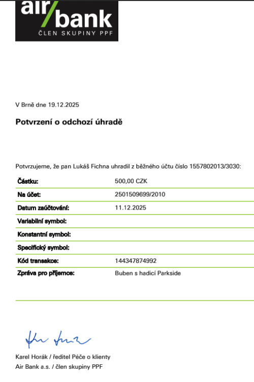 | 29. 12. 2025 | Online přes portál | 2501509699/2010 | 500,- | - |