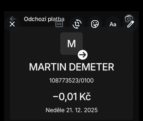 Poslat zprávupřidal/a skutečné jméno majitele účtu: Martin Demeter k bankovnímu účtu: 108773523/0100