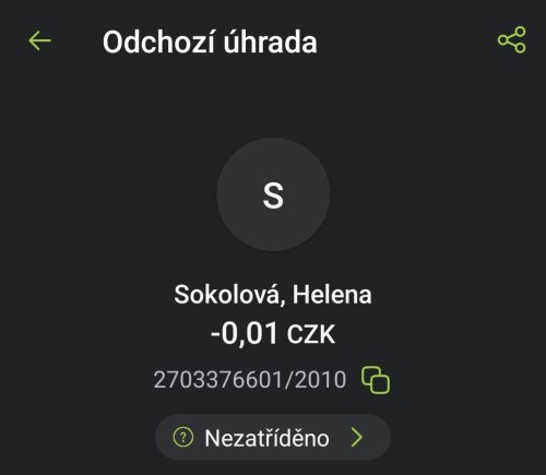 Poslat zprávupřidal/a skutečné jméno majitele účtu: Helena Sokolová k bankovnímu účtu: 2703376601/2010