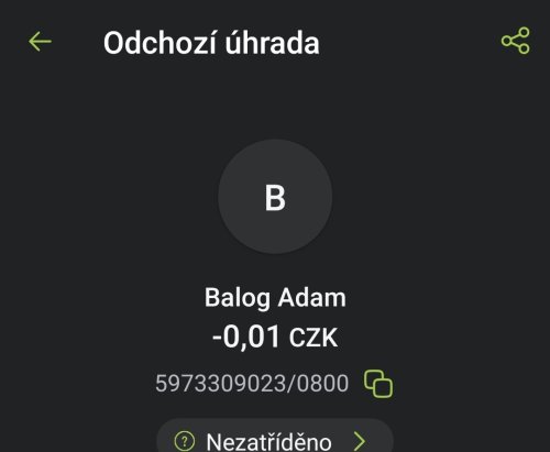 Poslat zprávupřidal/a skutečné jméno majitele účtu: Adam Balog k bankovnímu účtu: 5973309023/0800