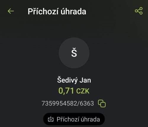 Poslat zprávupřidal/a skutečné jméno majitele účtu: Jan Šedivý k bankovnímu účtu: 7359954582/6363