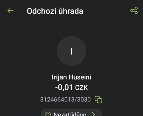 Poslat zprávupřidal/a skutečné jméno majitele účtu: Irian Hiseini k bankovnímu účtu: 3124664013/3030