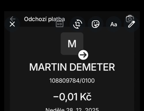 Poslat zprávupřidal/a skutečné jméno majitele účtu: Martin Demeter k bankovnímu účtu: 108809784/0100