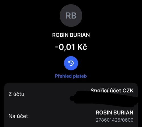 Poslat zprávupřidal/a skutečné jméno majitele účtu: Robin Burian k bankovnímu účtu: 278601425/0600