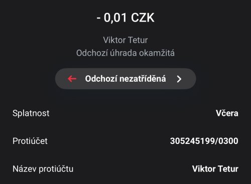 Poslat zprávupřidal/a skutečné jméno majitele účtu: Viktor Tetur k bankovnímu účtu: 305245199/0300