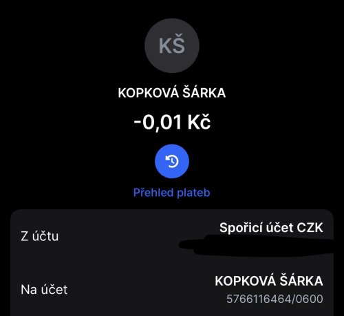 Poslat zprávupřidal/a skutečné jméno majitele účtu: Šárka Kopková k bankovnímu účtu: 5766116464/0600