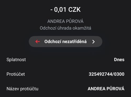 Poslat zprávupřidal/a skutečné jméno majitele účtu: Andrea Půrová k bankovnímu účtu: 325492744/0300