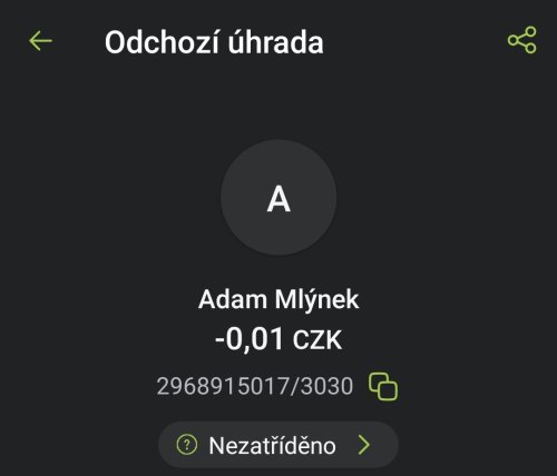 Poslat zprávupřidal/a skutečné jméno majitele účtu: Adam Mlýnek k bankovnímu účtu: 2968915017/3030
