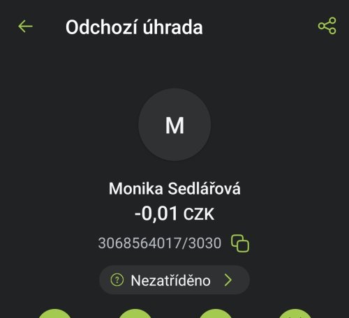Poslat zprávupřidal/a skutečné jméno majitele účtu: Monika Sedlářová k bankovnímu účtu: 3068564017/3030