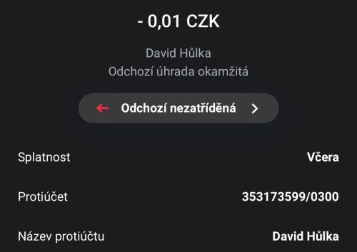 Poslat zprávupřidal/a skutečné jméno majitele účtu: David Hůlka k bankovnímu účtu: 353173599/0300