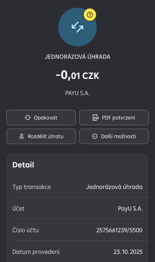 | 21. 10. 2025 | Online přes portál | 2575661239/5500 | 500,- | - |