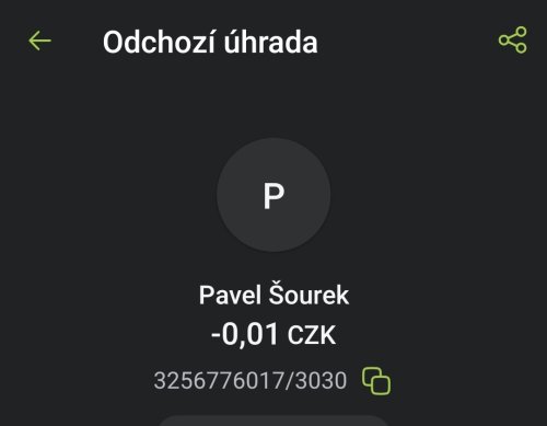 Poslat zprávupřidal/a skutečné jméno majitele účtu: Pavel Šourek k bankovnímu účtu: 3256776017/3030