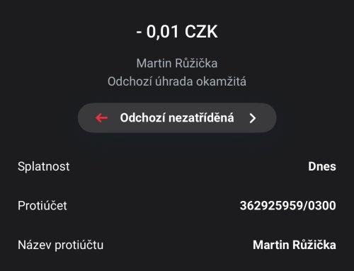 Poslat zprávupřidal/a skutečné jméno majitele účtu: Martin Růžička k bankovnímu účtu: 362925959/0300