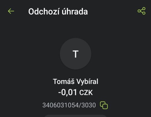 Poslat zprávupřidal/a skutečné jméno majitele účtu: Tomáš Vybíral k bankovnímu účtu: 3406031054/3030