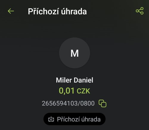 Poslat zprávupřidal/a skutečné jméno majitele účtu: Daniel Miler k bankovnímu účtu: 2656594103/0800