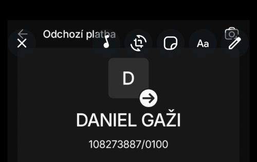 Poslat zprávupřidal/a skutečné jméno majitele účtu: Daniel Gaži k bankovnímu účtu: 108273887/0100