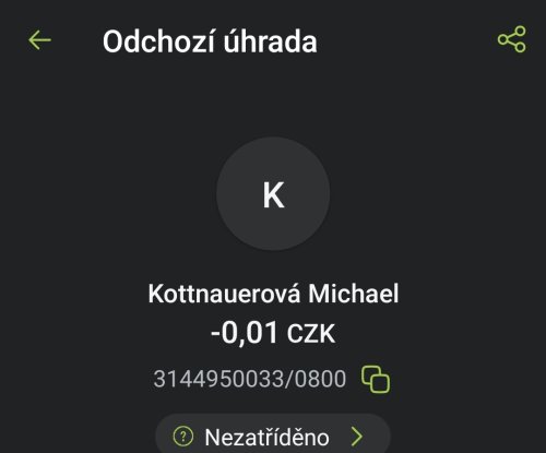 Poslat zprávupřidal/a skutečné jméno majitele účtu: Michaela Kottnaeurová k bankovnímu účtu: 3144950033/0800