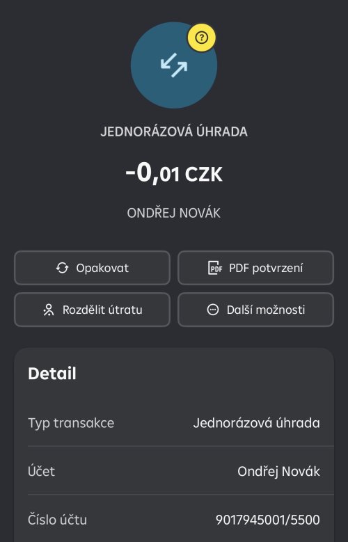 Poslat zprávupřidal/a skutečné jméno majitele účtu: Ondřej Novák k bankovnímu účtu: 9017945001/5500