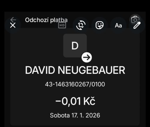 Poslat zprávupřidal/a skutečné jméno majitele účtu: David Neugebauer k bankovnímu účtu: 43-1463160267/0100