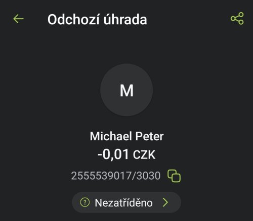 Poslat zprávupřidal/a skutečné jméno majitele účtu: Michael Peter k bankovnímu účtu: 2555539017/3030