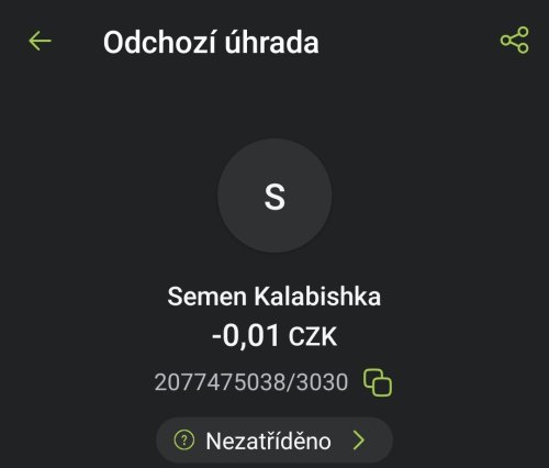 Poslat zprávupřidal/a skutečné jméno majitele účtu: Semen Kalabishka k bankovnímu účtu: 2077475038/3030