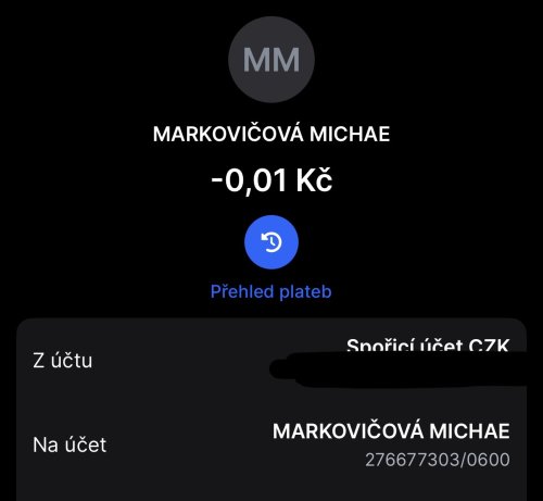 Poslat zprávupřidal/a skutečné jméno majitele účtu: Michaela Markovičová k bankovnímu účtu: 276677303/0600