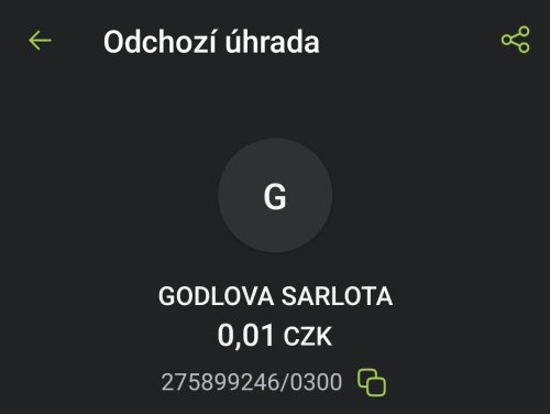 Poslat zprávupřidal/a skutečné jméno majitele účtu: Šarlota Godlová k bankovnímu účtu: 275899246/0300