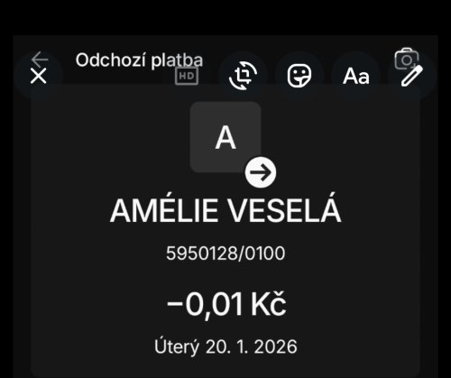 Poslat zprávupřidal/a skutečné jméno majitele účtu: Amélie Veselá k bankovnímu účtu: 5950128/0100