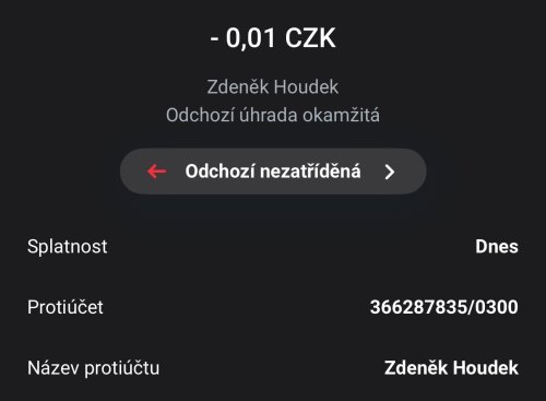 Poslat zprávupřidal/a skutečné jméno majitele účtu: Zdeněk Houdek k bankovnímu účtu: 366287835/0300