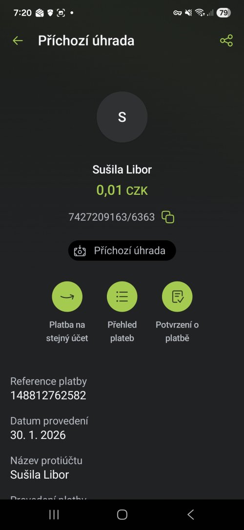Poslat zprávupřidal/a skutečné jméno majitele účtu: Libor Sušila k bankovnímu účtu: 7427209163/6363