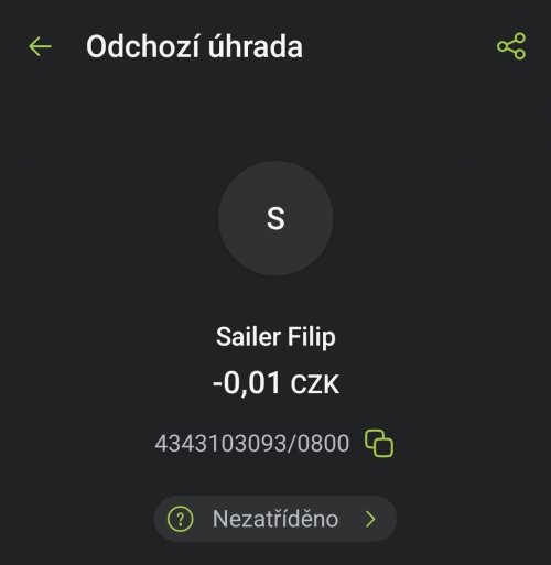 Poslat zprávupřidal/a skutečné jméno majitele účtu: Filip Sailer k bankovnímu účtu: 4343103093/0800