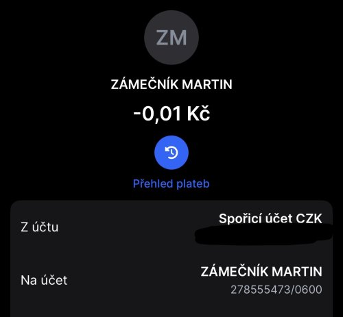 Poslat zprávupřidal/a skutečné jméno majitele účtu: Martin Zámečník k bankovnímu účtu: 278555473/0600
