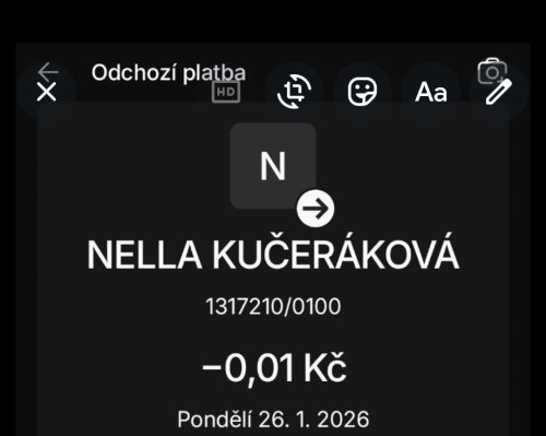 Poslat zprávupřidal/a skutečné jméno majitele účtu: Nella Kučeráková k bankovnímu účtu: 1317210/0100
